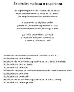 FUERTE COMUNICADO DE LAS ASOCIACIONES RURALES DE LA REGIÓN